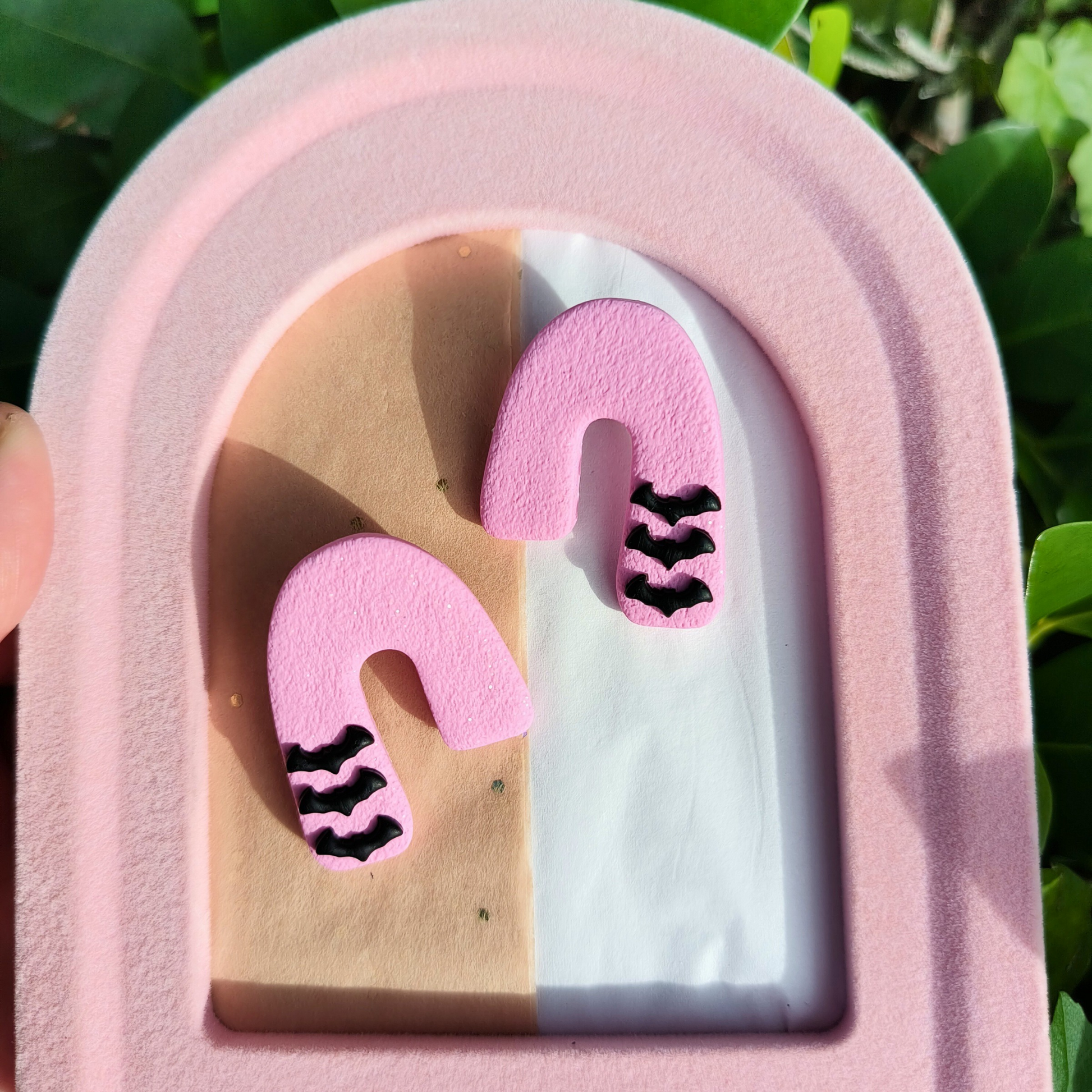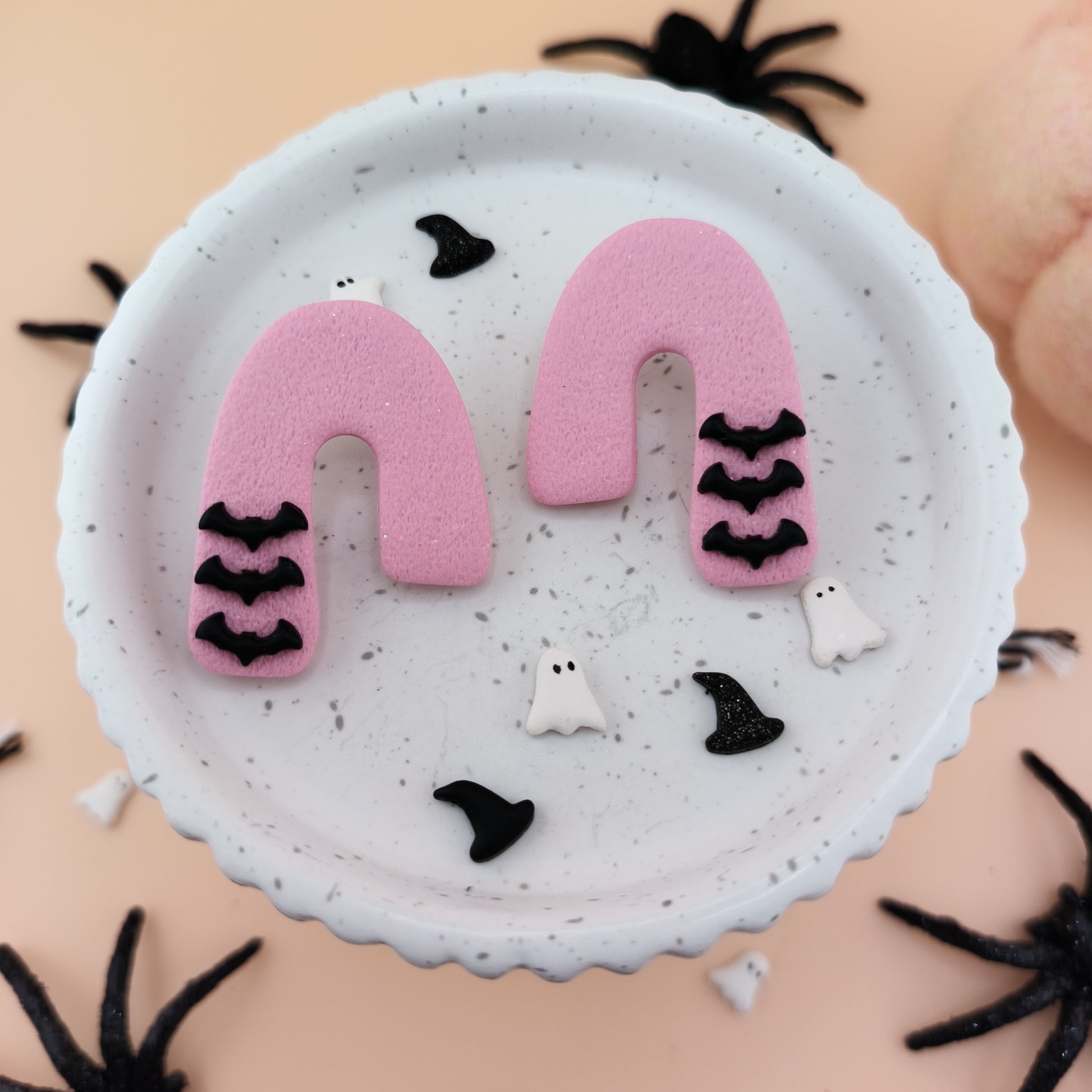 Add a splash of spooky charm with these pink Halloween earrings, featuring delicate black bats. These handmade studs are perfect for those who want a fun, vibrant twist on traditional Halloween style. Embrace your inner basic bat and let your accessories do the talking this season!